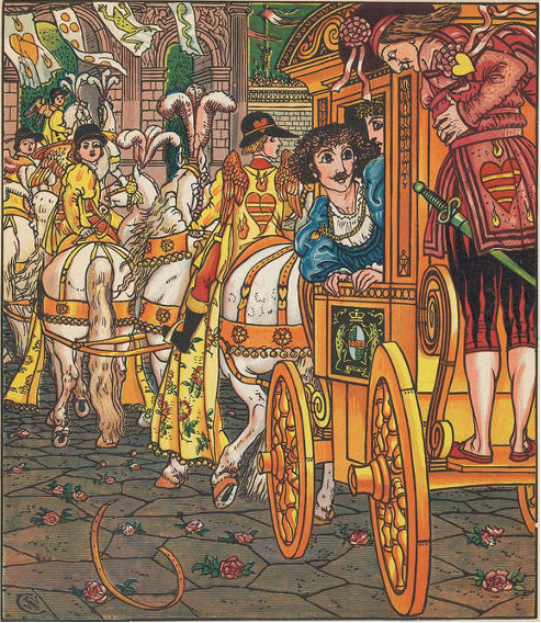 But when he fell down, he was not a frog, but a prince with beautiful friendly eyes. And he was now, according to her father’s will, her dear companion and husband. He told her how he had been enchanted by a wicked witch, and that she alone could have rescued him from the well, and that tomorrow they would go together to his kingdom. Then they fell asleep.