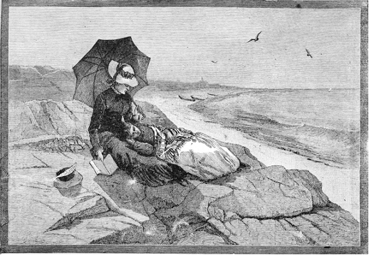 With her head in Jo’s lap, while the wind blew healthfully over her (Drawing by Frank T. Merrill for the first illustrated edition [1880] of Little Women)