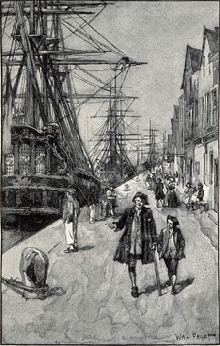 Long John Silver and Jim Hawkins (illustration by Walter Paget, 1899)
