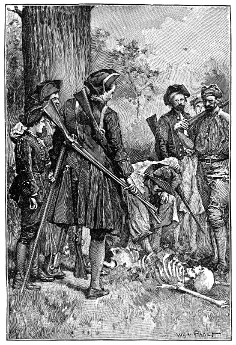Long John Silver, Jim Hawkins, and the mutineers finding only bones (Walter Paget, 1899)